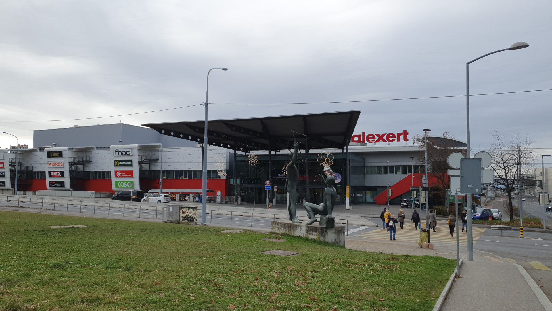 This place has everything, La Post, Pharmacy, watch and key fixers, copy center, food, cinema, Migors Supermarket, Denner Supermarket and many more. Great place for kids to play, they have electronic games for kids, a play area that you can leave your kids safely while you shop, bowling, billiards and arcade games too..