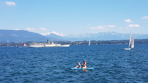 There is a small public beach here, on the north shore of Lake Geneva. It has a grassy area with steps going down to a pebble beach. There are a lot of families with small children, so if you find that disturbing you should avoid the beach. Parking is also problematic, there's a public carpark about 10 minutes walk away, or there's the bus. As everywhere in Geneva, if you have a motorbike and can take it, do so. Down by the harbour there's a small self service cafe with seating outside. They bake their own cake. It's well worth stopping for coffee and a piece of cheesecake. For those who don't like cake, there's some...