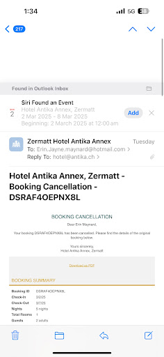 I had a reservation for April 19, 2025, which was fully prepaid. Unfortunately, just days before my arrival, a severe snowstorm and extreme weather hit the region. This led to a multi-day power outage, road closures, and the suspension of all train services to Zermatt. Authorities explicitly advised against traveling to avoid worsening the chaotic situation in the village. I checked the traffic situation daily, but the route was only partially reopened in the early afternoon of the planned arrival day – far too late if you have a half-day journey ahead. When I called, I was told to submit cancellation requests via email. The response I received was that trains were running again and that I could have traveled (screenshot attached), and therefore no refund would be issued. I find it irresponsible and outrageous to deliberately ignore official warnings and expect guests to travel under such extreme conditions. I will be filing a formal complaint with the local authorities. They even wrote on their website that “ We kindly ask hotel partners and holiday home providers to show goodwill and take the current circumstances into account.” I’m aware that as an individual I might not achieve much, but at least this will put the management on the radar. I also strongly encourage anyone reading this to file a report as well via mail to: direktion@zermatt.swiss