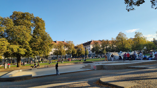 Eine kleine schöne Wiese mitten in Zürich 3 mit einem kleinen Hügel, Spielplätzen für Kinder und oh Wunder, sogar ein paar Parkbänklein, welche man in Zürich ja mit der Lupe suchen muss. Bei schönem Wetter ist es hier voll mit Menschen, Kindern, Familien, die sich sonnenbaden, im Wasserbecken plantschen, die Füsse baden, lesen, Schach, Ping Pong, Federball oder andere Ballspiele spielen, bei der Bar Kaffee oder Bier trinken, rauchen, sich unterhalten, lachen und meistens friedlich sind. Leider ist es am Wochenende manchmal einfach nur eine Müllhalde, ein Picknick-Orgien-Platz für Leute, die meinen, sie können den Park zu ihrem Wohnzimmer machen und die Sau rauslassen, ihren Abfall einfach regelmässig dort meterhoch liegen lassen, nachdem sie einen ganzen Abend und bis tief in die Nacht dort ihre Fiestas lauthals feiern, den ganzen Platz bei der überdachten Stelle und die Feuerstelle besetzen, tanzen und herumschreien. Amüsant auch dass das der Treffpunkt für viele FCZ Fans vor dem Match ist, die auch den Park in eine Müllhalde verwandeln, Knallpetarden und Feuer ablassen, die Nachbarn mit Lärm, Parolenschreien terrorisieren, lärmen, primitiv sich besaufen und agressive Stimmung verbreiten, noch amüsanter die komplett unfähige Polizei, welche jeweils dumm daneben steht und tatenlos zuschaut, wie Hausmauern versprayt werden, Mülltonnen umgekippt, angezündet, der öffentliche Verkehr behindert und Parolen skandiert werden, die mich eher an vergangene militante Bewegungen erinnern als an friedliche Fussball Supporters. Das passiert regelmässig alle paar Monate. Seltener sieht man dort auch Obdachlose und sozial Verwahrloste, Alkoholiker, Drogensüchtige und jugendliche Gangs, die zwar meistens friedlich sind. Einmal zwar wurde ich von einer jungen Frau agressiv angegangen in der Nacht. Aus diesem Grund meide ich die Wiese am Freitag und am Samstag sowie in der Nacht, da manchmal sich auch etwas komische, finstere oder Leute mit krimineller Ausstrahlung dort herumtreiben . An allen anderen Tagen und tagsüber kann man gut dort hingehen und auch meistens seine Ruhe haben...