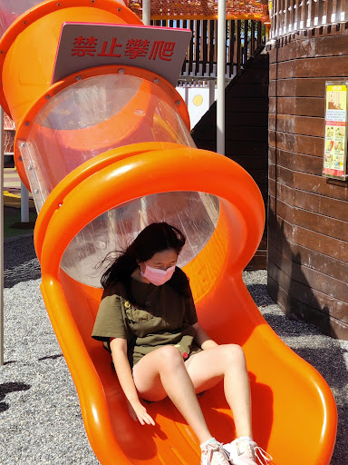 洋蔥大福9公尺高,旋轉滑梯2~3樓高,溜下會忍不住尖叫。怕太高也有磨石子溜滑梯。