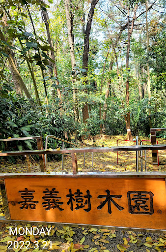 Read more嘉義樹木園設立於1908年,佔地約8.3公頃。園區除外來樹種,也種植不少臺灣稀有植物。 已錄得種子植物81科355種,物種豐富。 有標示植栽至少如下: 薑 薑黃 薑某 蕹ㄩㄥ菜 (空心菜) 仙丹花 烏心石 (臺灣含笑) 粗糠柴 咖啡樹 相思樹 珊瑚珠 薑荷花 珊瑚藤 三白草 菠蘿蜜 (波羅蜜) 姑婆芋 黑板樹 煙火樹 春不老 (蘭嶼紫金牛) 番茉莉 鑲邊爵床 柯柏膠樹 (菲島)福木 天堂鳥蕉 金鳥赫蕉 菲律賓榕 斑葉月桃 單子紅豆 金黃百合竹 巴西橡膠樹 (橡皮樹) 斑葉月桃 斑葉閉鞘ㄑㄧㄠˋ薑 山刺番荔枝 (巴西番荔枝) 寬葉十萬錯 金幣變葉木 山刺番荔枝 (刺果番荔枝)