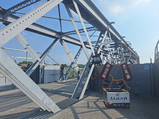 Read more很有歷史的橋!比西螺大橋還久遠喔。虎尾鐵橋 1907年建造特有的三線平行軌,五分軌、七分軌並置。七分車可以銜接臺鐵鐵路做轉運使用。五分車通常以運送原料為主,但也能載運旅客。橋面鏤空,視覺更好。 Very historic bridge! Longer than Silo Bridge. The Huwei Railway Bridge was built in 1907, using a unique three-line parallel rail, with a five-point rail and a seven-point rail side by side. The seven-segment track can be connected to the Taiwan Railway Railway for transshipment. The five-point rail is usually mainly used to transport raw materials, but it can also carry passengers. The bridge deck is hollowed out for a...