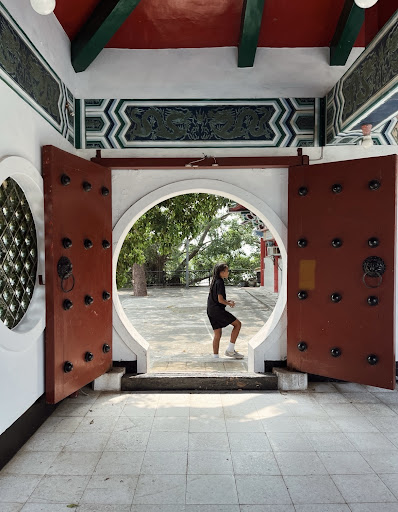 The architecture reflects traditional Chinese palace-style design, complete with a grand staircase, red pillars, and a sweeping tiled roof. Inside, the shrine is adorned with commemorative plaques and incense burners, creating a tranquil atmosphere for reflection. Visitors often come to pay respects, light incense, or simply enjoy the serene surroundings.