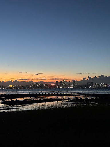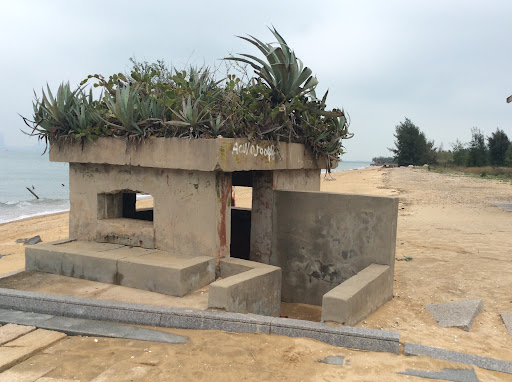 Cool calm beach facing mainland China (Xiamen) with anti-amphibious landing spikes all along the beach,...
