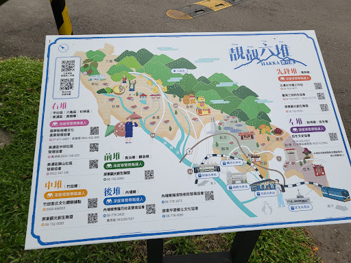 ■第二目的地〔六堆客家文化園區〕 11:15來到屏東縣內埔鄉信義路588號的六堆客家文化園區,翠華開轎車載我從林後四林平地森林過來距離20.3公里,車程大約23分鐘。屏東縣各鄉交通蠻流暢,車輛不是很多。 ■六堆客家文化園區牌樓很大,白色字體更是超級醒目,大門外的人行道上插著六種顏色長方旗,分別是左堆、先鋒堆、中堆、前堆、後堆、右堆,六色旗還隨風飄揚,氣派十足,這輩子頭一回來認識南台灣的客家文化,充滿新鮮感,就這〔六堆〕是什麼意思已經讓我好奇不已。 ■難得停車場相當美化,而且免門票入園區參觀。 佔地約30公頃,哇,也是很大範圍有得走哩! ■主要展示臺灣高雄市、屏東縣十二個客庄的客家生活風貌。 目前是慶祝十週年紀念,11:25我們開始參觀〔六堆藝廊畫展〕,很有水準的作品喔!尤其一幅“宋代千手千眼觀音”畫作,靠近仔細觀察,真的有可能一千隻手掌喔!每一個手掌有一個眼睛,畫工好細膩啊!實在讓人欽佩又欽佩! ■園區分成自然草原區、田園地景區、傘架客家聚落區、九香花園伯公區以上四大區域。 一個小時逛不完,肚子已經餓到發出聲音,趕緊覓食去;找來找去,終於坐定。 午餐吃飽了,猜猜我倆吃甚麼? 小米大腸+香腸各一條切片共享,茶葉蛋兩個,蜜鳳梨愛玉+檸檬愛玉各一碗,哇,好香,超級好吃,尤其是米腸香腸搭配愛玉,呷了也唰嘴,一口接一口停不下來,真的喔!不一會兒肚子就填飽啦! 我們又回去六堆文物館裡面坐下來吹冷氣,非常享受,哈哈! ■其實林後四林平地森林和六堆客家文化園區,最好都能自備食物,當做野餐郊遊比較方便,否則園區太大,走到腳酸而且容易感覺飢餓。 ■竹炭藝術館 原本以為是賣竹炭襪或相關物品,但是進入參觀後,好多個讓人讚嘆不已的竹炭藝術雕塑作品,非常喜歡喔!觀世音菩薩、咬錢蟾蜍、台灣黑熊、十二生肖金碳元寶、關聖帝君、布袋和尚彌勒佛……,每一個藝雕維妙維肖,讓人越看越喜歡,太棒了!而且有竹炭製作說明。 ■沒想到六堆客家文化園區看點如此之多,還有煙草製造的影片,在一間小閣樓吹冷氣欣賞,超舒服耶! ■廣大的草坪綠草如茵,又到處可見大樹林立,涼爽樹蔭下和建物走廊提供很多桌椅給遊客使用,又有水面綠到令人嘖嘖稱奇的人工湖,忍不住一直拍照留念,也繞湖賞景走了一圈才回到停車場。 ■收穫很多,增廣見聞最深刻的部分就是六堆如何走過歷史。 在今日所謂的「六堆」,是人民對於位在臺灣南部的客家族群聚落區域的通俗稱呼,其不是政府的行政區域劃分中的實際地名。 而六堆客家文化園區是客家委員會客家文化發展中心所屬園區,2011年10月22日正式開園至今。哇,我都快70歲了,對台灣各縣市各鄉鎮的淵源還如此陌生噢! ●本園逗留150分鐘11:15~13:45。 接下來先開車返回屏東市翠華府上休息,補充體力,再進行今天最後一個景點〔千禧公園〕。 PS:翠華下廚展現傑出料理,15:28烹飪拿手好菜上桌,我們開始享受午晚餐的營養佳餚: 氣炸鍋烤雞腿、新鮮鱸魚味噌湯、電子鍋烘菜蛋、青椒炒小魚乾和豆干、以及紫米糙米飯。 彷彿在進補,把這兩天消耗的體力與熱量一次補足。感恩感恩! 飯後聊聊天,談談彼此退休生活重心放在哪裡,雖然時隔二十幾年才再相聚,仍然...