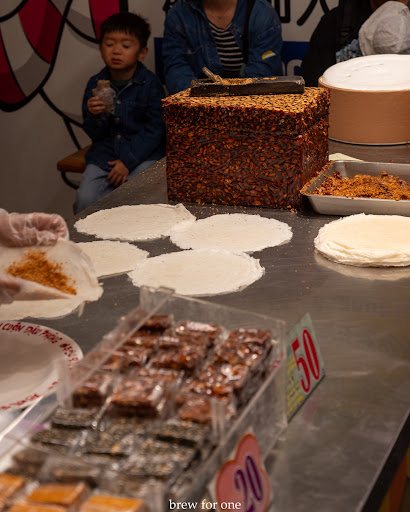At first glance, it looks simple, but the flavors and textures are next-level! The roll is made with a paper-thin spring roll skin, filled with freshly shaved peanut candy, and stuffed with rich peanut ice cream. The result? A crispy, nutty, creamy, and icy combo that’s absolutely satisfying! 😍 But here’s the real question: Would you add coriander? 🌿 I know, it sounds strange, but the herby freshness balances the sweetness so well. Fortunately I'm with the majority of the people who can actually eat coriander, so more for me.
