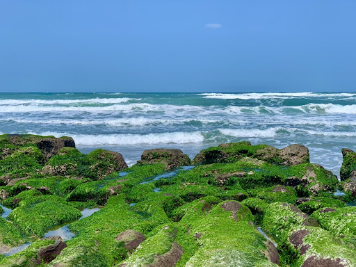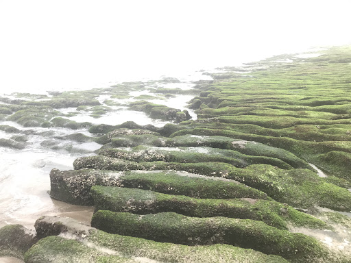 I read online that the green reef is starting to turn vibrant, and I checked the tide schedule on the government website, which shows low tide at 2:50 PM on February 20th. The driving directions are straightforward; just follow the signs, and there's a parking lot nearby charging $60 TWD on weekdays and $100 TWD on weekends. There are a couple of vendors selling sausage and the locally famous Gelidium drink. Beach access is right after the vendors, and in my opinion, the green reef looks better on the lighthouse side. It also appears that there's a trail access from the lighthouse. Remember not to step on the green reef as they are...