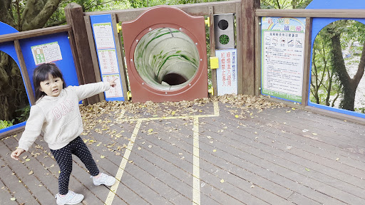 有一座跑酷步道,藉由高低起伏讓孩子挑戰體能與平衡感,步道下方還有設置三個盪鞦韆,小小孩也不愁沒得玩。最吸睛的是彩虹樹藤溜滑梯,除了高度很高以外,還有彎曲轉折,孩子溜完都說好刺激好好玩。