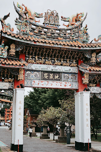 新莊線從一號出口出來是和廟方同一邊方向,往大漢橋的方向(出口左邊)走,會先經過新莊國小,接著就看到「新莊地藏庵」的大門(旁邊緊鄰中正公園)。