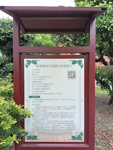 Read more位於屏東市崇蘭里崇蘭69號/創建於清光緒6年(1880年)崇蘭蕭家開基距今270餘年/蕭氏家族史可為一部屏東市崇蘭地區拓墾開發的見證史/蕭氏子孫在清領時期有九位秀才/蕭氏古厝屬於宗祠木結構建築/保存良好/成為崇蘭蕭家奉祀先祖及凝聚後代子孫力量的精神性建築/除了建築本體的木結構之美/工藝之美/彩繪之美/最重要的是傳承蕭氏家族書院風氣的特殊意義/為閩南式建築/表現出南方建築的精緻細膩/蕭家在地方頗具影響力/對教育有貢獻/家旁設學堂-課餘軒/並且參與屏東書院的設立與運作/古厝保存至今/因其建築與裝飾的...