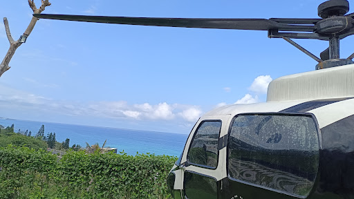 Beautiful set-up for photo taking. From a helicopter replika to candi bentar, or split gateway (Balinese architecture). Beautiful Pasific ocean as the background.
