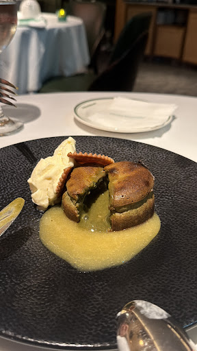 Read more前菜有兩種 一個是蟹肉餅 最上面是魚子醬 中間是蟹肉碎 最下層是高湯做成的蒸蛋 好吃但不會驚訝 香煎干貝是相比之下更令人驚艷的 伴侶對干貝還好的人 也覺得很好吃 熟度剛好 不會中間很生 搭配的碗豆泥 沒有草味 反而有畫龍點睛的感覺