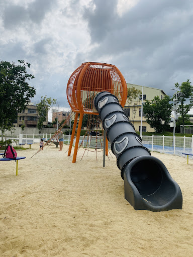 ⚠️行前小提醒⚠️ 1.公園內沒有設置廁所,需提醒孩子遊玩前先行如廁後再來遊玩,鄰近的公廁可到大峰路的超商與加油站使用。 2.水母滑梯塔較適合學齡的孩子及攀爬技能已點滿的小童。 3.停車格不多,如車子停在大峰路上步行到公園的話,人行空間及燈號設置都不夠直覺。 4.無遮陰,需要避開較曝曬的時段前往遊憩。 —————— 公園以滯洪及防災為主,遊憩功能為輔,所以遊憩設施的話相較於其他新建公園來說或許就沒這麼豐富。但如果就鄰里公園的標準來看的話,其實算是配備還算齊全的公園了,有籃球場、多功能廣場、遊戲場及ubike站點,可滿足基本的休憩需求。 單就遊戲場的部分來說的話,很難得有一座適合大童的遊戲空間,不僅滑梯具有速度感外,也因為沒有設置樓梯、爬網間距稍大的關係,對於已點亮攀爬技能但苦於沒地方發揮的大童非常友善,雖然挑戰性有限,但已是鄰近場域中最適合大童的遊戲空間了。 另外這裡的沙坑非常黏人,加水後非常好塑形,如果孩子還不敢玩滑梯的話,帶個挖沙工具來的話也能待上好一陣子。但旋轉遊具因為種在沙坑上的關係堆滿不少的沙在裡面,雖然不影響遊戲功能,但如果較介意遊具整潔度的話可能要稍微評估一下是否適合孩子遊玩。 不過這裡滿妙的是沙坑圍籬屬於半開放式的,應該只能防得了人卻防不住貓狗的進入,...