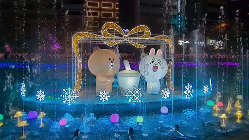 During the day it's not so impressive. Just some nice landscaping and shells of decoration on the "river" (more like a canal that has a dam on it). However at night the place comes alive. All the decisions have beautiful lighting and the plants and trees on the river side are also lit up beautifully.