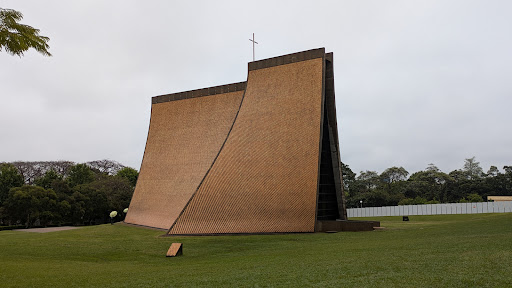 It such a great chaple. It has beautiful view. A lot of tree and grass, that makes this chaple green. This chaple located in Tunghai University. So, from the gate you need to walkin. For me its Little bit for from the shelter. There is parking palete for bus and car next to caple. Near of the chaple there is night market called Tunghai University night market. Thing that makes this chaple special is the share of of the chaple itself. Its look like triangle, but it was not like exactly triangle.