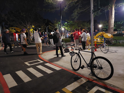 2023/12/17 「交通主題」公園完全展現了台灣對交通無知的狀態:沒有左轉專用道、專用號誌;機車待轉區跟兩段左轉;整路雙黃線不能超車;看不到幹道的支線停止線、停讓標線;路側沒有人行道家長只能走在車道上…要不要乾脆來裝個爆閃燈?希望小孩從這麼爛的「交通主題」學到什麼?這是個除了盲點體驗區之外根本不值得一提的「交通主題」公園