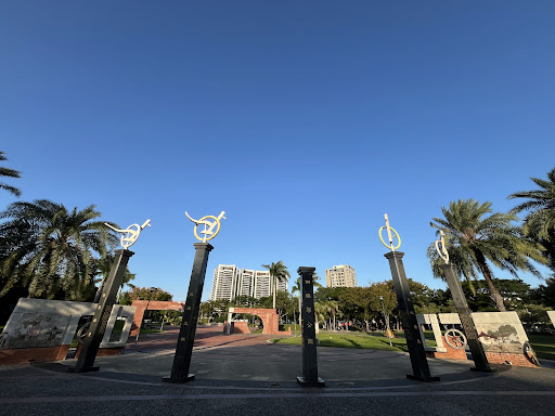 Needed a place to expend some energy for my 4 year old after a two hour car ride. Place is clean and has some street parking. Some people doing the usual. For young children there are some high steps and dangerous areas so keep your eyes on them. Neat statues and my favorite was a diorama of the park itself which was pretty cool. For some odd reason there are two places with books which is something I've never seen at a...