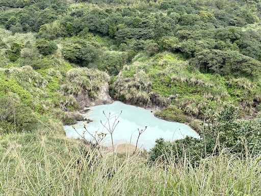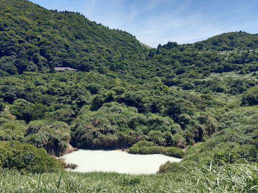 Read more雖然只能遠觀但因為是可以順路撿起來的景點,不用耗費太多體力加上景觀特別所以給5星⭐ 有2個地方可以清楚看到牛奶湖,一個是從冷水坑遊客中心往菁山吊橋方向步道的岔路,有個小觀景台就解說牌,另一個點是冷水坑遊客中心停車場,停好車直接看,有夠方便 牛奶湖原本是露天礦場的礦坑,因沒有清水流過所以礦物質經過長久累積變成白色沉澱物,此處火山物質濃度較高,不適合水生植物,原本還有另外2個礦坑是有清水流過的,...