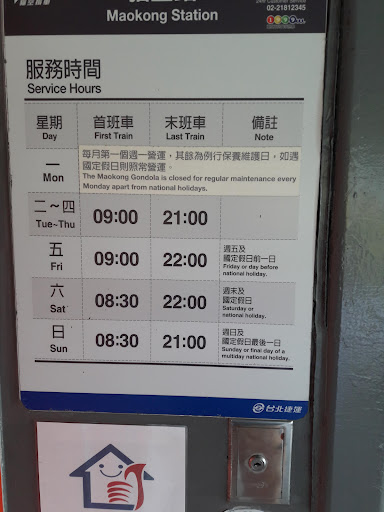 Read moreCame here after visiting the zoo and it was already dark by the time I got on the gondola. The gondola only had a very dim light and I couldn't view much of the sight near me, I could only see Taipei's illuminated skyline from faraway. The gondola system was impressive and it took me around 20 mins to get from the Zoo station to Mao Kong station. If you're travelling at a public holiday and is only visiting to experience the gondola system, I would suggest not to travel the entire system until Mao Kong station, instead, get off 1 station eariler at Zhinan Temple Station. I visited at the Chinese New Year and lined up for only around 15 minutes at the Zoo station to get on the gondola, but lined up for around 45 minutes at the Mao Kong station just for...