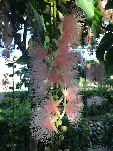 Read more大池湖畔步道植滿各式各樣的樹木🌲,近來「碎花棋盤腳」,開始掛滿樹梢,美不勝收。 士校大池的碎花棋盤腳花朵開的漂亮,大約再一週左右就都要掉下來了。 花朵掉下地面以後,花朵隨風飄搖,晃啊晃的,很是討喜可愛。 忍不住將她們集中擺在一起,拍起照片來,又是別有一番不同的感覺。 花朵掉下後,果實(花苞?)由樹上垂掛下來一串一串的,也很特別。 士校大池占地約4公頃,又稱為「士校埤塘生態公園」,她位於桃園市中壢區榮民南路,對面是陸軍專科學校。 早晨及傍晚有許多民眾在此健走運動。 最近台灣欒樹也正在開著黃色花朵,落羽杉的葉子也長著翠翠綠綠的,很是漂亮。 此處也離漂亮的龍崗圖書館很近,在池塘逛逛後,可順道至圖書館走走,也是不錯的選擇。 這裡適合各年齡...