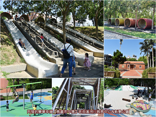 維基百科 老街溪河川教育中心位於桃園市中壢區中原路58號(中壢、平鎮交界處),為一以河川為主題的教育中心,於2011年6月5日成立。該建築位於老街溪畔,由原有兩棟客家古厝改建而成。主要介紹有關老街溪的河川整治過程、河川生態等資料。入口處有四座時光隧道滑梯,供孩童們遊玩。 [1] 位於中壢平鎮交界處,是全國第一個以「河川」為主題的教育中心,該中心比鄰老街溪畔,見證河川整治過程。河川教育中心在新榮小學右側所保留的0.4公頃上,改建原有兩棟客家三合院古老磚厝,透過緊鄰老街溪的地理空間及老厝建築的歷史營造,做為大眾溯源尋根的文史基地、探索河川的體驗場域,也同時藉由空間與體驗結合,轉換成永續的態度