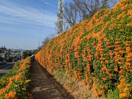 Read more位在工業區旁的花海公園,一高一下5~10分鐘左右就到了,沒有看到停車處,大家都停路邊,因為亂停就拍不到最美的三層花海美景了,走上步道發現垃圾落葉不少,既然是景點了,公所還是要注重整理一下,其實這的感覺有點像是京都的蹴上鐵道,是賞櫻秘境之一,雖然沒在使用了,也是整理的很乾淨,讓遊客拍照享受櫻花的美,也使遊客流連忘返,每年都想去欣賞。炮仗花海是一個不錯的景點,拍照非常適合,不管是櫻花還是炮仗花,都讓我印象深刻,跟其他櫻花景點不同。台灣人對於景點就是吃吃喝喝,然後上個廁所後走人,然後别人問好不好玩,通常回就看花、不好玩!這樣的旅遊方式,造就台灣觀光無趣,回流率低,只有夜市吃喝,其實台灣真的不差,只是不會規劃,考察真的當出去玩?!可惜浪費台灣各地美景!用心每個月都有不同的銅鑼的美,也不會人潮只有花開,花謝沒半人,用心經營規劃,就有機會改變。希望停車空間可以解決,而不是擋住美景,環境美化是為了讓大家知道不能亂丟垃圾!不能用手拉下櫻花枝葉拍照,廁所也要規劃,不要亂蓋!拜託!攤販也要注意規劃!一個賺錢好的景點,真的不是短視近利的,共識共享才能共生,自私自利只會變成一次性景點!然後什麼都沒了!願台灣越來越美,...
