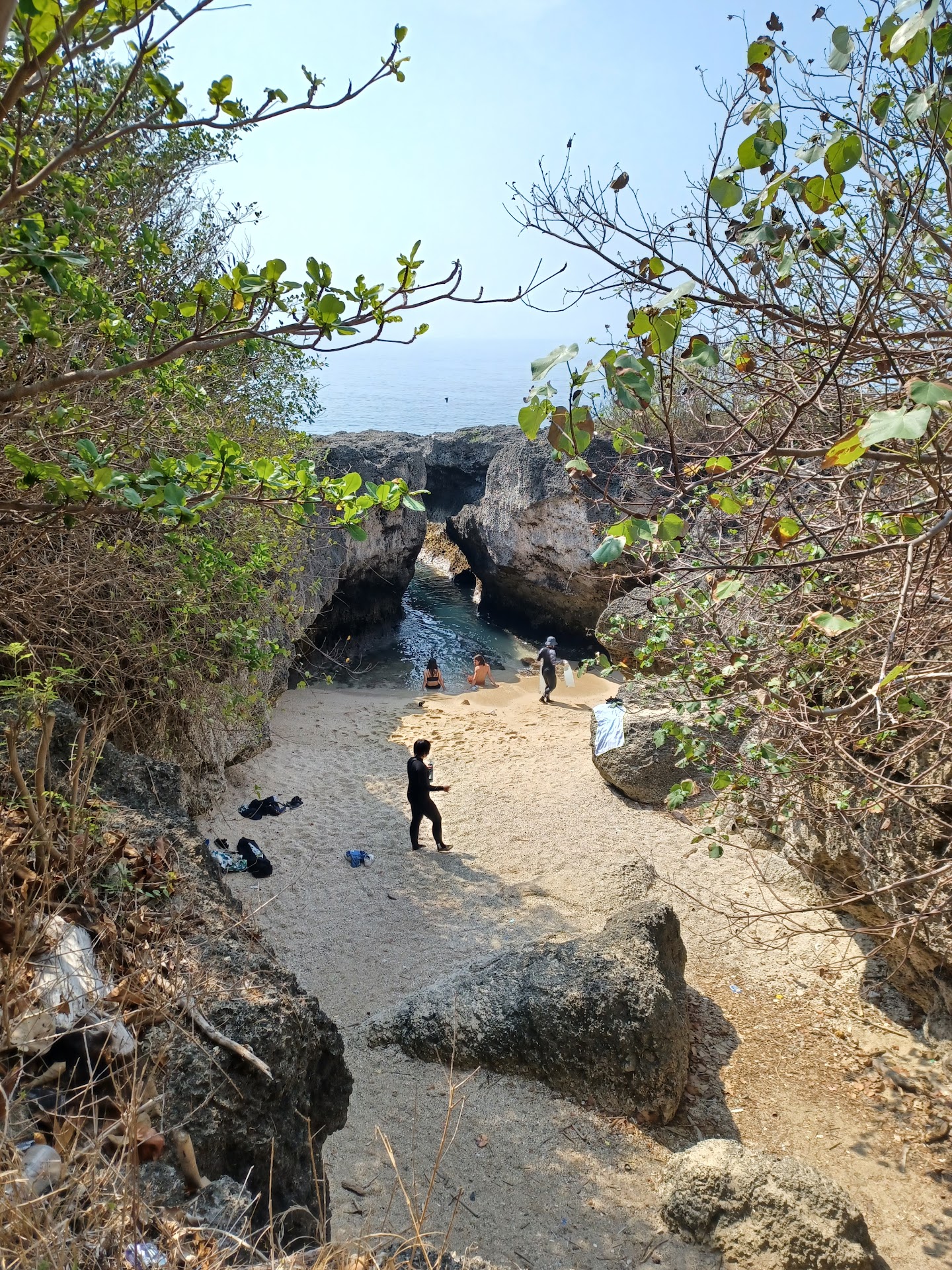 Read moreNothing more than a rope chain down 4 meters from the paved trail to the sand below. Though going down may be simple enough, getting back up with flipflops was not something I was looking forward to. As such I was unable to snorkel or explore the waters.