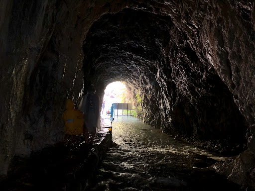 The trail features several tunnels, including the longest one near the trailhead. Bringing a flashlight is recommended, as some tunnels can be quite dark.