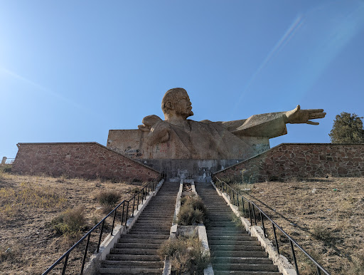 Read moreЭто один из самых больших бюстов Ленина не только в Таджикистане, но и за его пределами. Ленин в Истаравшане изображён с вытянутой вперёд рукой: длина его руки — три метра, пальца на руке — один метр. Истаравшан — чудесный город Таджикистана, и одно из чудес, которые здесь ждут путешественников, это уникальный памятник Владимиру Ленину — таких больше не найдёшь во всей республике. Он был построен в середине 1960-х годов, это работа литовского скульптора, жившего в то время в Худжанде. Памятник Ленину открыли в честь запуска Каттасойского водохранилища в 1965 году. Кстати, это водохранилище до сих пор является одним из главных источников пресной воды в районе. Чтобы добраться до памятника, нужно подняться по длинной лестнице. Жители Истаравшана толком не знают, сколько здесь ступенек: кто-то говорит, что 410, кто-то — 420, мы насчитали 365 ступенек. Это число, вероятно, символическое, обозначает 365...
