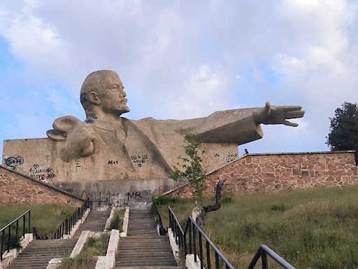 This massive bust of Lenin marks the stairs that links the high part of the town and the lower part. It is an incredible relic from Soviet Times and it should be visited by anyone who is interested in the Soviet times or history in general. From the top of the stairs it is possible to see a lake and the mountains. The statue is written all over, mostly with messages...