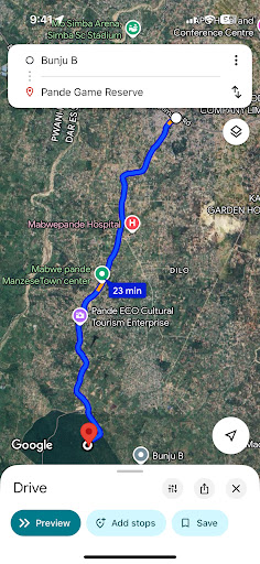 The best road to take is from bunju B (see google map pic). The other roads are barely passable.