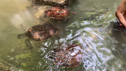 We enjoyed visiting the turtle aquarium, there's a little pool with a few baby turtles and then a large natural salt water pool that contains the adult turtles. You can get in the water with the turtles or you can feed them seaweed from the edge. The staff will explain the different breeds of turtle to you as well as show you a humpback whale skeleton and dolphin skulls.
