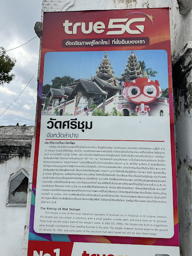 Read moreThe History of Wat Srichum from the board at the entrance: " This temple is one of the most important examples of Burmese art in Thailand. In its original creation, this temple was very simple in structure, with a small gazebo, a water well, and some trees on its grounds These trees are the origins behind the temple's name. In 2435 B.E. (1892), the temple was built to magnificent glory through contributions from wealthy Burmese in the area. The temple, however, burned down to the ground on January 16, 1992, and some parts of the structure that were saved can still be seen...