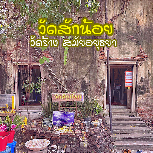 😂 วัดสักน้อย ซี่งเป็นวัดที่นับว่าเป็นแหล่งท่องเที่ยวทางศาสนาที่น่าสนใจในจังหวัดนนทบุรี เนื่องจากเป็นวัดร้าง เหลือแต่วิหารเก่าชำรุด วิหารวัดสักน้อยมีอายุประมาณ 100 กว่าปี เป็นอาคารก่ออิฐถือปูน มีแผนผังเป็นรูปสี่เหลี่ยมผืนผ้าขนาดกว้าง 9 เมตร ยาว 15 เมตร วางตัวตามแนวทิศตะวันออก ตะวันตก หันหน้าไปทางทิศตะวันออก