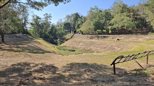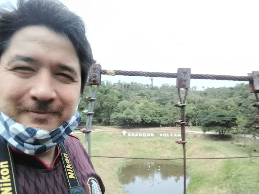 Extinct volcano today if that wasn't clear at what Once Upon a Time was its mouth there is now a pond and a suspension bridge overlooking it with signage for some photos though if you want a photo at the sign from the suspension bridge only denies telephoto lense camera i.e. 300x I'll send you this pain there is a few large lava rocks to it signal what once was Once Upon a Time. Yhe surrounding deciduous forest...