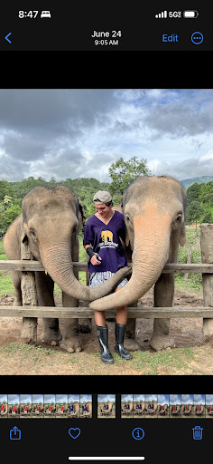 What a wonderful experience!! We started out the day being greeted by Lida and Mr. B in our resort lobby. Both were extremely kind and we had great conversation on the drive up the mountain. Lida Talked to us about the Thai culture, answered any questions that we had about Thailand, and educated us on the temples and the elephants. Our first stop was at the top of the highest mountain where we took in some views and stretched our legs a bit. After a short drive we then got to the National park to view the temples and they did not disappoint. The views from these temples were breathtaking and the gardens and landscaping were worth the drive by themselves. After switching to a 4 wheel drive truck, our next stop was the treehouse. We walked up a short path through the jungle to the treehouse as Lida explained what some of the plants were. Once we got to the treehouse we washed up and then climbed up the stairs to be greeted by the cook who showed us to our table. We sat on a cushion on the ground with our feet dangling off the treehouse and our food was brought to us. Not only was this an amazing meal, but the serene environment and sounds of the jungle (and waterfall) added the perfect ambiance to our lunch experience. One highlite for me was the coffee, the gentleman who grew this coffee served it to us after we ate. And then on to the part that we had been waiting months for, time to visit the elephants. As we got to the elephant camp, the first thing we saw was Mina. There are not many elephants in Texas so this was a special experience for us. We spent some time with Mina and then changed into the rubber boots, and started the hike. It was not a difficult hike at all but just enough to show you some of the country-side. We then got to the camp where we changed into our swimwear. We got very lucky and did not need bug spray or sunscreen Although we did bring them just in case. We then met the rest of the elephants and walked them down to the waterfall. We had so much fun playing with the elephants and spending time with them. Lida got behind the camera and took a bunch of pictures so that we could focus on the elephants. After a good amount of time at the waterfall we then headed back to the camp, showered and got ready for dinner. The dinner did not disappoint and once again had a wonderful jungle ambiance with elephants trumpeting in the background. We then packed up and made our way back to the truck. We did not return to the resort the same way we went to the elephant camp so this allowed us to see even more of the countryside.
