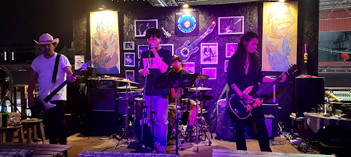 Interesting little place for what it is. Located inside a Night Market, it's upstairs in a little area that was created for this bar it seems. It says that they have food but I never saw any food. I believe most nights they open at 7:30 and are open until about midnight. At this time they are closed on Mondays. The drinks are pretty standard fare. They showcase bands that are local, but have some amazing talent, especially when it comes to guitar playing. Drinks seem pretty cheap. Usually two bands play per night. It's a comfortable venue to watch some live rock music. One band was focused on mostly post 1990 Grunge music and forward. The other band was focused on mostly 80s era Hard Rock and Metal. They started out with hits by Dire Straits , Queen , Etc , but quickly devolved into a barrage of music by ACDC , the Scorpions , Metalica, Etc . Except for this odd version they presented of the 1960s hit, Can't Take My Eyes Off Of You, a song that SHOULD be despised by EVERYONE. The guitarist in this band is not to be missed, despite the music. He's phenomenal!