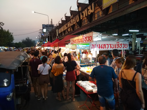 Read moreI lived for 4 months in Chiang Mai and the Night Market at Chiang Mai gate was a regular spot to go for dinner. There's also a day or "wet" market at this location that's more popular with locals buying provisions and for the few restaurants inside. Across the street in the evening you'll find vendors lining the roadway. The second vendor from Chiang Mai gate has been making Som Tom green papaya salad for the last 30 years, and it's the absolute best I've had in Thailand. Near the Western end in the center of the market across the street from the wet market you'll find a very nice and very busy woman and her daughter selling the best fruit shakes at the cheapest price you're going to find anywhere, 20฿ for all flavors. Also along the south side you'll find KFG and excellent panko deep fried chicken and shrimp for 50฿. On the north side keep an eye peeled for the "cake lady" who sells decadent sweet treats for 25-40฿. Near the cake lady keep an eye out for eggs on a skewer. A hole is poked in the shell, seasonings added, then the eggs are stirred up through the hole, steamed and then skewered and grilled over charcoal....