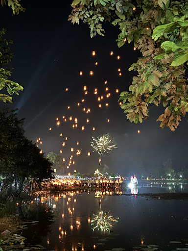 We celebrated Loy Krathong and Yi Peng at the lake and had a blast! The parking was perhaps more of an adventure for the people who arrived later; we were able to park our car very close by because we got there early, maybe around four in the afternoon. There were a ton of food vendors with an excellent variety available, and people were selling lanterns and krathongs. They really packed in the people in the area near the lake so we were glad we got there early to establish our little seating area with chairs and a mat to sit on. The professional fireworks show was beautiful, and once everyone began setting off their personal fireworks, it got quite crazy! The lake was a perfect setting for the celebration, plus watching the lanterns drift over the surrounding hills at twilight was a...