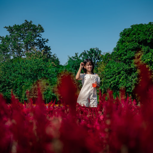 Randomly found this beautiful flower field on google map and decided to visit it. Entrance fees was 50 baht per person for unlimited duration. Friendly owner greeted us and told us that we can freely used the props (umbrella, fake flower, basket and etc.) for photoshoot.