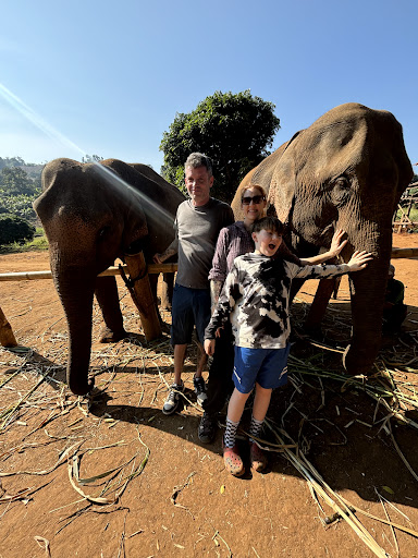 We stopped by a local market on the way up and Jakkie walked with us explaining various foods sold there. We went to an exclusive elephant Mahout experience. They care for 3 elephants of various ages and each one has their own handler who has raised them from a very young age. The elephants are in great shape. No scars or deformities. They do not force the elephants to do anything. Initially the elephants were taken by surprise when we all went to the jungle to find them. They were upset and moody so we went to prepare food for them and some medicine balls infused with vitamins and minerals that they are fed daily. After a few hours the elephants were back closer to the home in the jungle and we went down to the river to feed them and wash them. It was an amazing experience. The elephants enjoyed us washing them and scrubbing them in the river.
