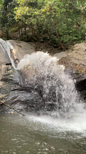 เข้าไปไม่ลึกมากจากถนนใหญ่ เดินจากที่จอดรถลงไปประมาณ4-500เมตร ทางค่อนข้างลื่น เป็นน้ำตกที่น้ำไหลลงมาตามร่องและลงมาเจอหินด้านล่างส่งน้ำพุ่งขึ้นไปด้านบนอีกครั้งก่อนจะตกลงมาเป็นแนวโค้งสวยงามแปลกตา อากาศเย็นสบายมีความเป็นธรรมชาติ อยู่ในเขตอุทยานฟ้าห่มปกแต่ไม่มีเจ้าหน้าที่ประจำ ขาดการดูแล...