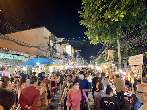 Read moreOne of the “do not miss” activities when you visit Chiang Mai, for sure!! The walking street is hugely popular with locals and tourists alike. Many people travel to Chiang Mai JUST to shop at this famous walking street market. It is usually pretty crowded, but be patient and take your time. There is a lot to see! You will find vendors here with mostly locally produced clothing, purses, leather goods, trinkets, souvenirs, artwork, home goods, local unique food items, and just about anything else that you can imagine. Artists on the street will paint or pencil your portrait, or you can hire one of them to make a special painting for you. Prices are very good (sometimes amazingly cheap) and sometimes can be a little bit negotiable. There are multiple food stands on the streets and in several of the temple grounds that serve just about anything that you may want. Also, an activity that you should plan for the evening is a one hour foot massage on the sidewalk to take some time to relax and watch the crowds. Be prepared by taking smaller bills with you for purchases. Some vendors take credit cards, but most don’t. Also, many vendors now accept the Thai QR app for purchases. (You need a Thai bank account to use that app, though) Be prepared to spend 3 or 4 hours walking, eating, and getting a...