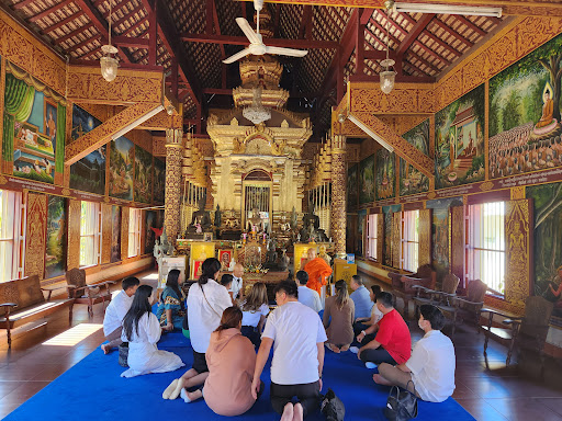 Read moreI had not planned to visit this temple, I was walking to some other place. Still, I noticed another of Chiang Mai's many wats and decided to have a look. I think this one I liked the most so far. In the morning it is so quiet, peaceful. I actually saw a couple of farangs reading books on the benches. Better come around 8-9 am. Later, more people will arrive. There are several big and small temple buildings in the territory. I like how the grounds are arranged, lawns with concrete paths. I guess that's why there are not so many cars parked inside like in some other places. They shaped some bushes like elephants, nice touch. There are stands with barcodes next to main buildings. The bigger barcodes are in Chinese, the smaller ones (there are only a few of them) are in English. You can scan them and watch a YouTube video about the object. The main temple contains a couple of pretty ancient and revered Buddha statuettes: crystal and marble. I did not really understand which ones were those, because there are very many Buddha images, some of them looking new. I think the one in the center, in a barred chamber, was the real one. I think it is possible to respectfully ask a monk, who might be around, to point where to look. Just one flaw. They offer (sell?) to release birds from wicker cages. Please, do not encourage this practice. If people continue "releasing" birds / fish, the locals will continue catching and caging them. In fact, in some other temple I saw a notice recommending not doing this. This Wat has a different stance, I guess. Overall, a really...
