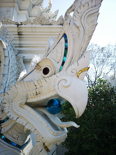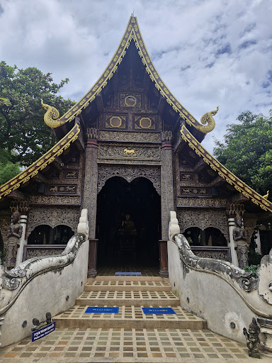 L’architecture traditionnelle Lanna est magnifiquement préservée : le viharn en teck aux toits à trois niveaux, les colonnes décorées de laque rouge et les détails floraux sculptés donnent un charme unique à l’ensemble. J’ai particulièrement aimé les petits détails comme les récipients de corail le long des murs, qui ajoutent une touche spirituelle intéressante et invitent à la méditation.