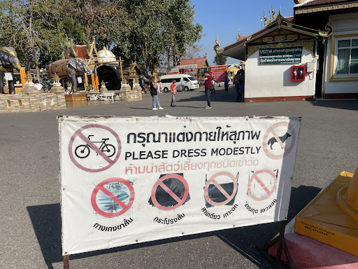 We went on a Sunday and there's so many people. Unlike the other temples, most of the visitors here were locals. The enormous statue of the Buddha by the entry point is the main highlight. We could see it from the road. It was also interesting to pass by the Chiang Mai university campus to get to the temple. From the parking lot, we already smelled flowers and incense. When we walked by the prayer area, there was a hill of flower offerings. We're glad we decided to come out on a Sunday and witness this wonderful culture of worship.