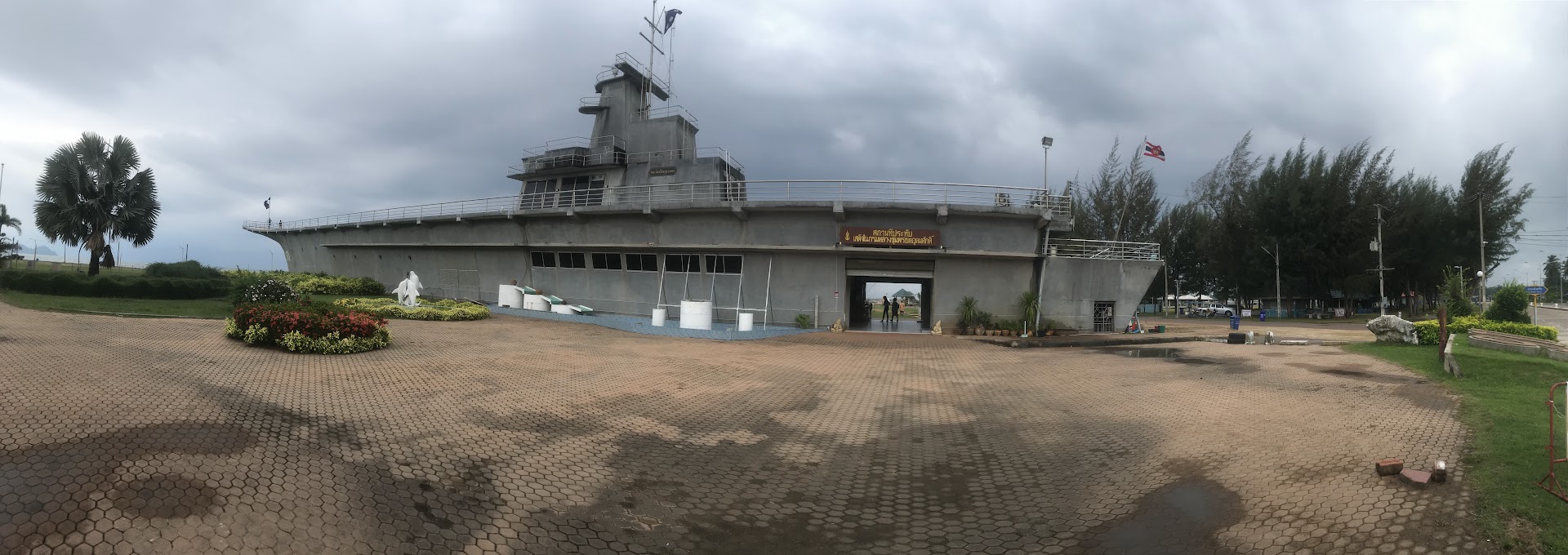 Cool monument representative of a historical Thai Naval legend who defeated the Japanese along the coast of southern Thailand. Greatly respected by the local community and honored on a daily basis with fireworks and other shows of respect. You can go inside several areas and also walk on the deck of this well built concrete model aircraft carrier. Spectacular views...