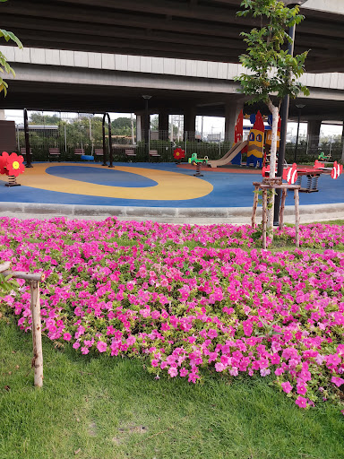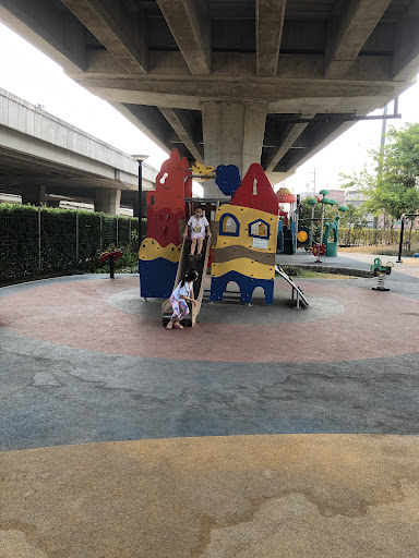 อุปกรณ์เครื่องเล่นอยู่ใต้สะพานข้ามแยก ทำให้ไม่โดนแดดส่องโดยตรง