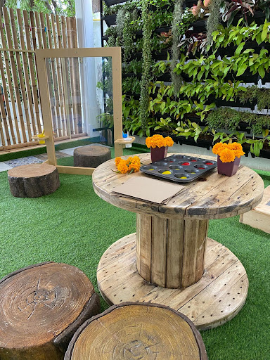 We arrived in Bangkok just ahead of the last term of our daughter's K1 year (and stayed for the first two terms of K2) and looked around at different pre-schools/nurseries across Bangkok. The minute we arrived at Little Treehouse we knew that this was the right place for our daughter. Despite it being a term holiday (so the school was empty), you could see that this is a place that takes pride in educating and nurturing children. There is artwork everywhere and evidence of tons of fun and educational projects in every nook and cranny throughout the building. There is an outdoor space (including of course a treehouse structure) where the kids will have their messy play time.